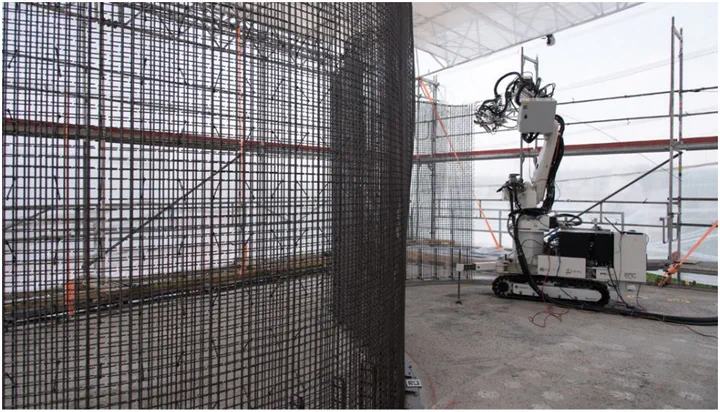 In situ Fabricator building the Mesh Mould Wall. © NCCR dfabAbstract